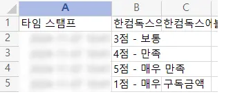 내보내기 기능을 이용하여 CSV 형식으로 다운로드 한 경우, 질문에 따른 응답 데이터를 확인할 수 있습니다.
