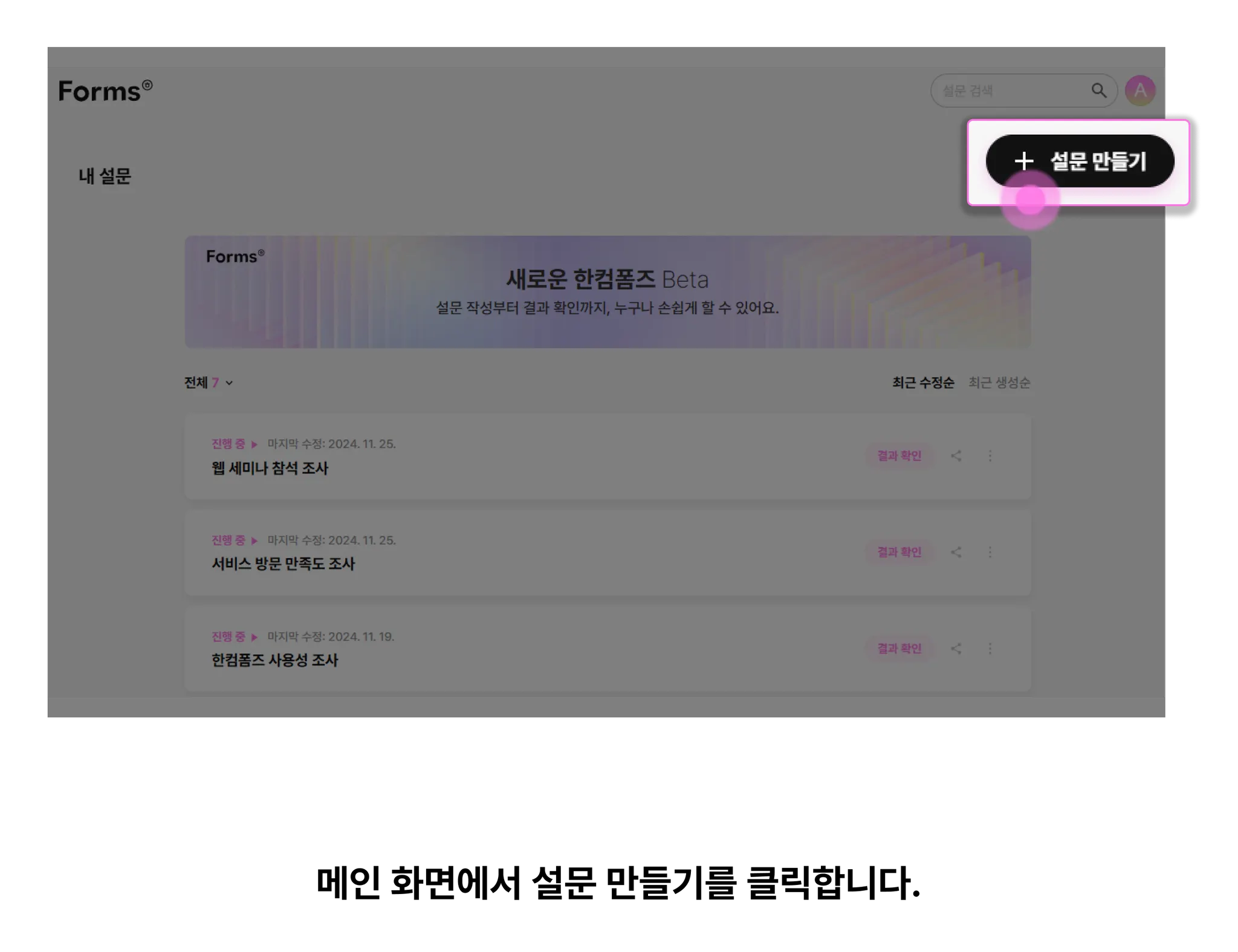 메인 화면에서 설문 만들기 버튼을 클릭합니다.